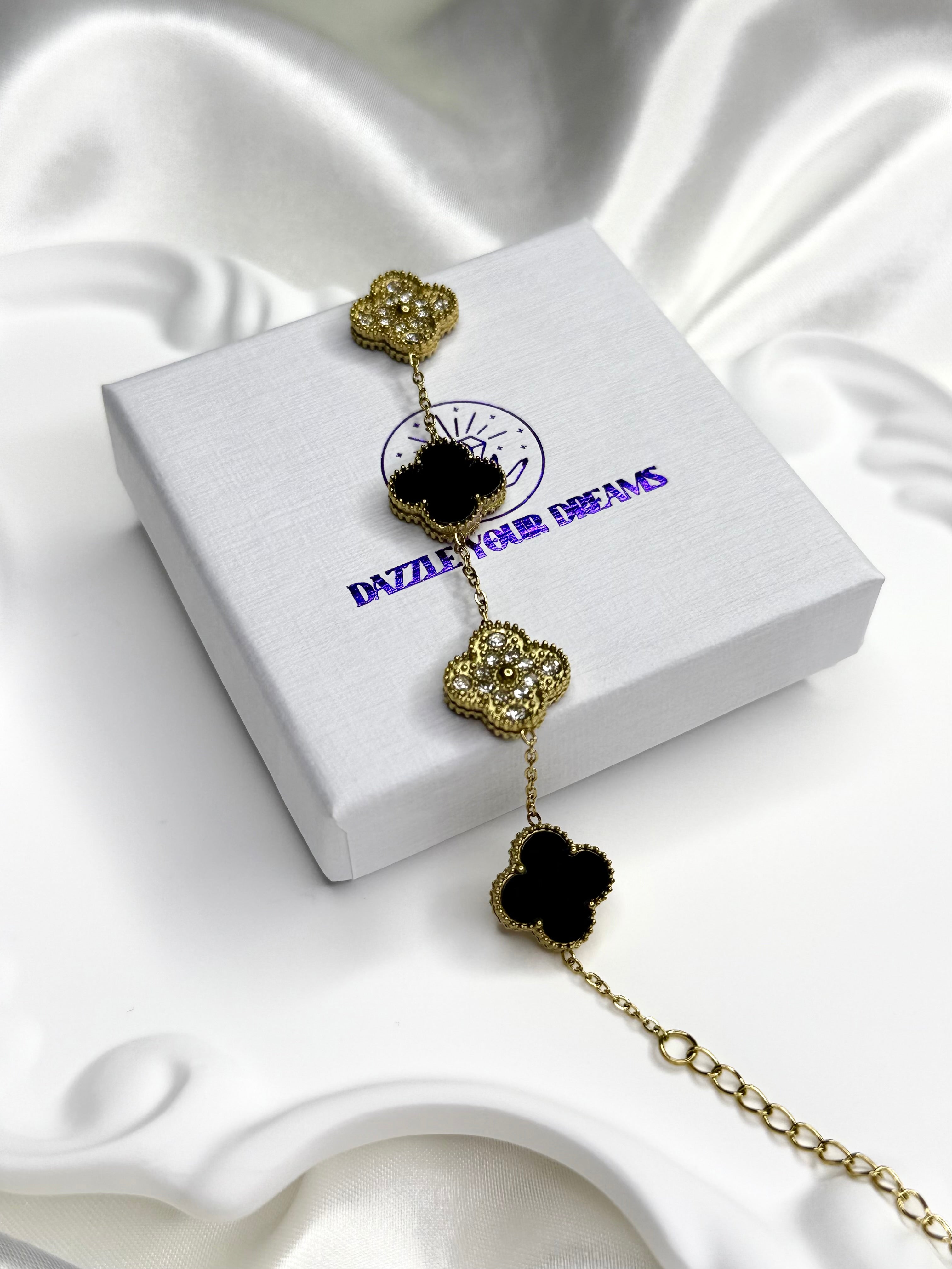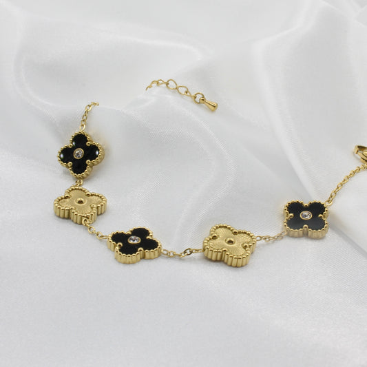 Experience luxury in every detail with Molly Black Flower Jewellery Set. 18K gold-plated stainless steel, hypoallergenic, tarnish-free and waterproof. Long lasting shine and elegant black flower design. Perfect for any occasion. Treat yourself or your loved ones with this stunning jewellery set.