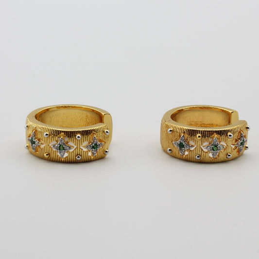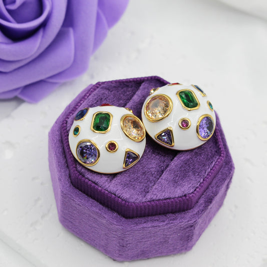 Luxurious and Elegant: 18K gold-plated stud earrings. Eye-catching ruby red and white cubic zirconia design. Earrings is hypoallergenic and tarnish-free. Elevate your look with these exclusive earrings.