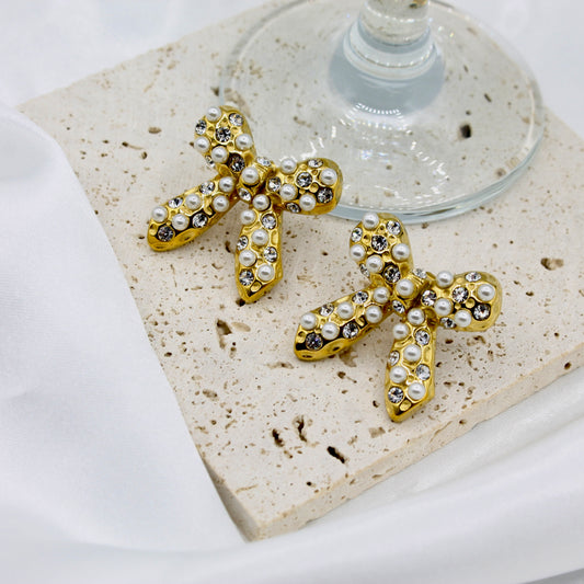 WHITE PEARL BOW EARRINGS