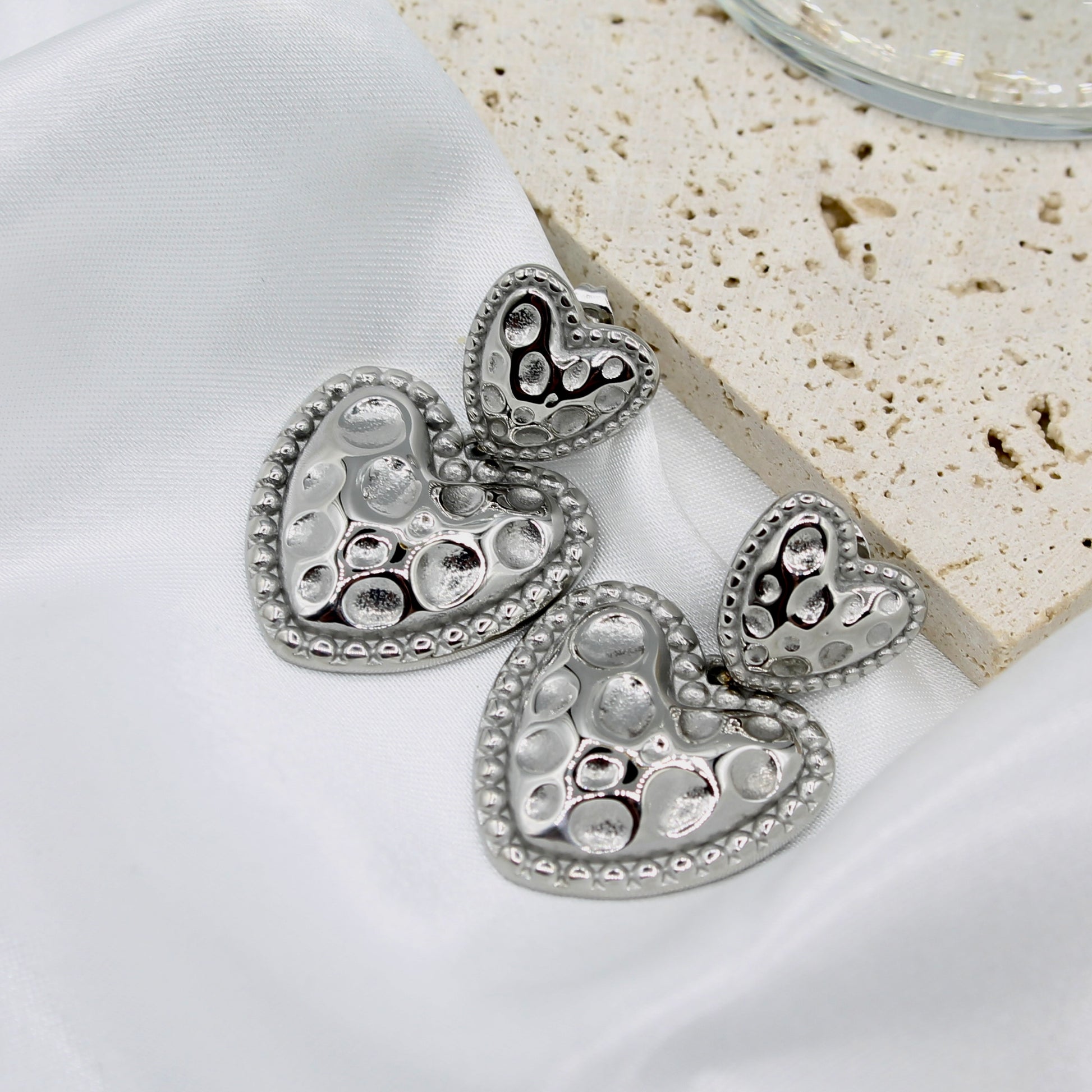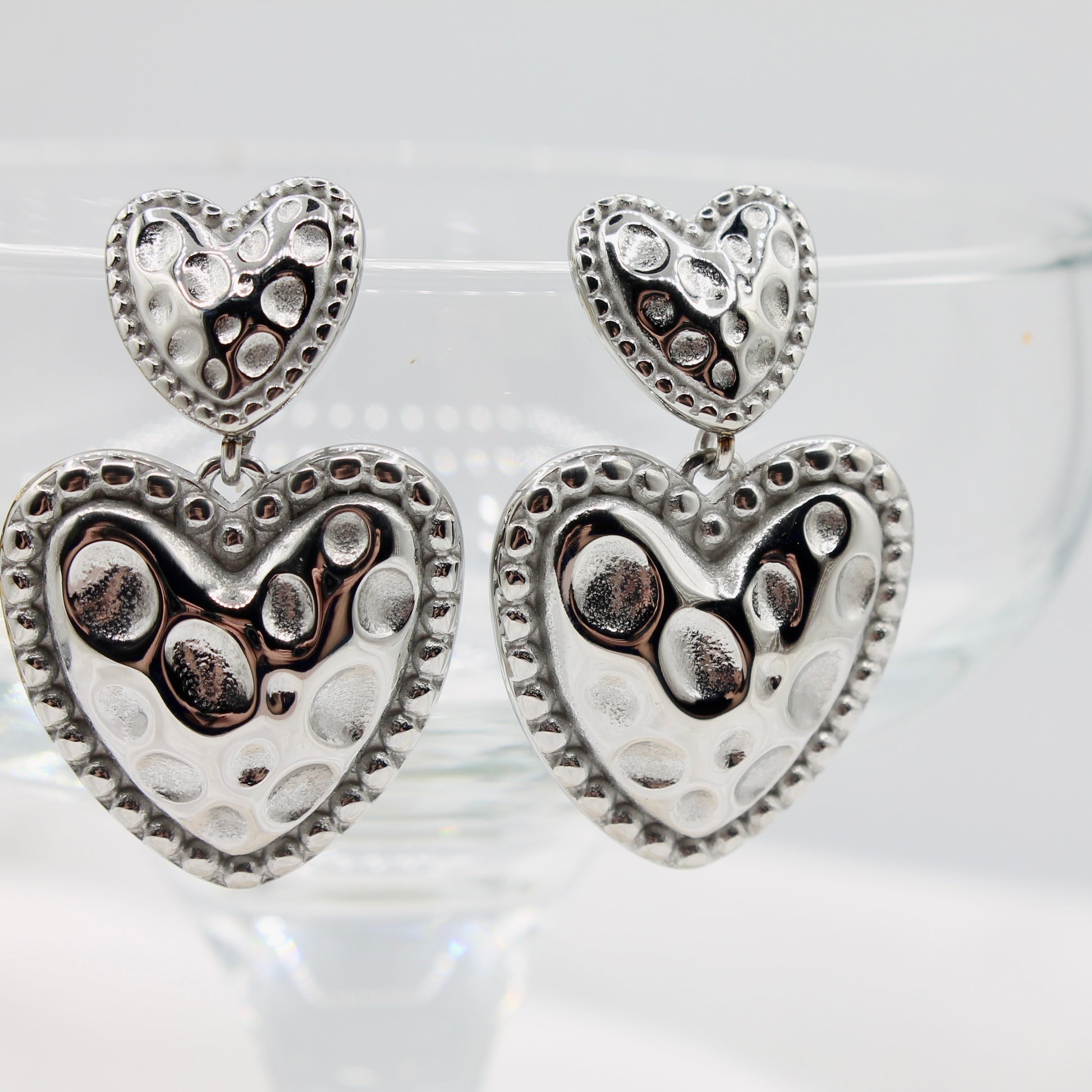 These elegant TEXTURED HEART DROP EARRINGS are perfect for adding a touch of sophistication to any outfit. With their unique textured design, these earrings are sure to catch the eye and make a statement. Crafted with precision and style, these earrings are a must-have for any fashion-forward individual.
